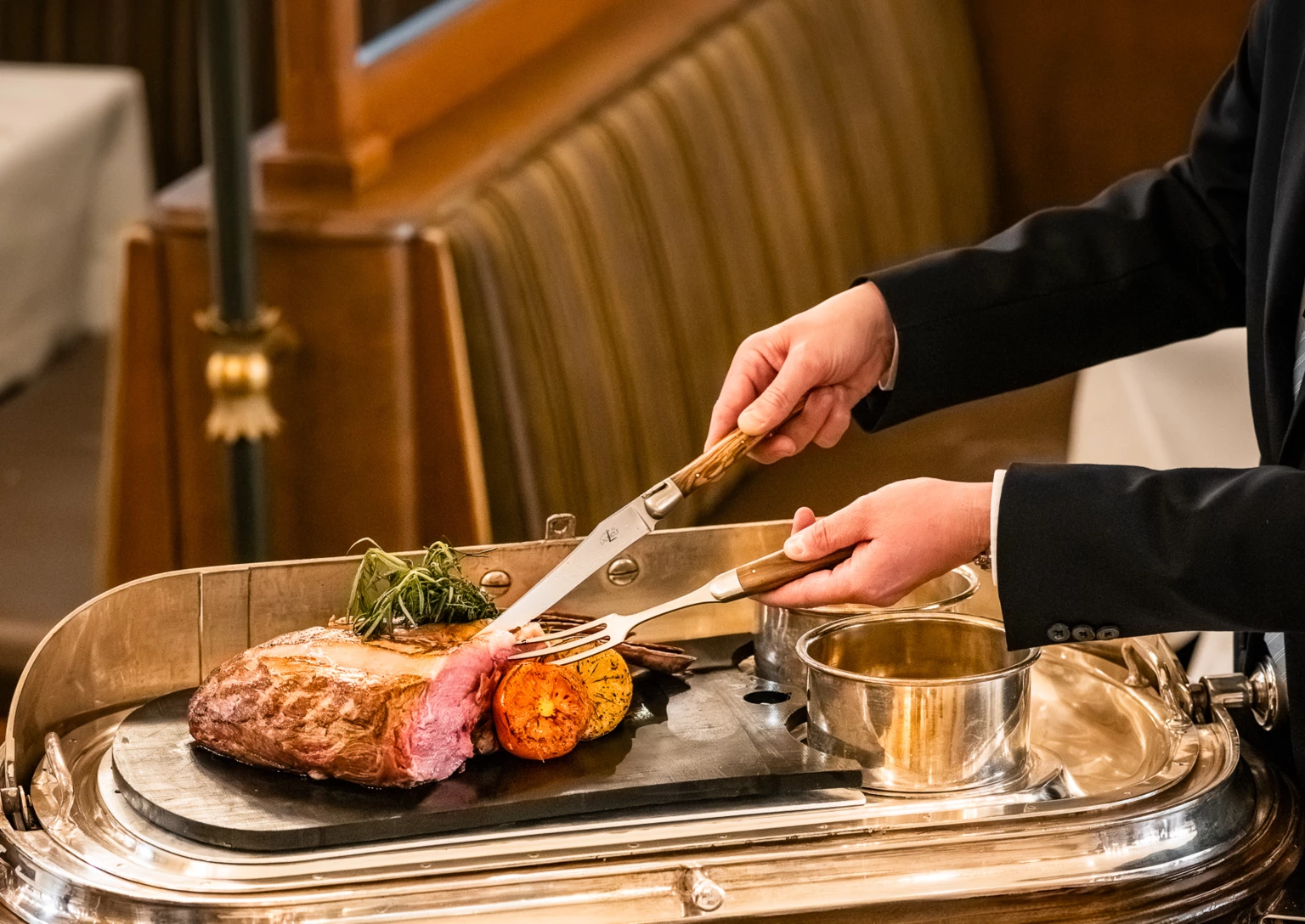 Wir verwöhnen Sie jeden Sonntag mit unserem Déjeuner Dominical, bei dem der Hauptgang direkt vom Tranchierwagen serviert wird.